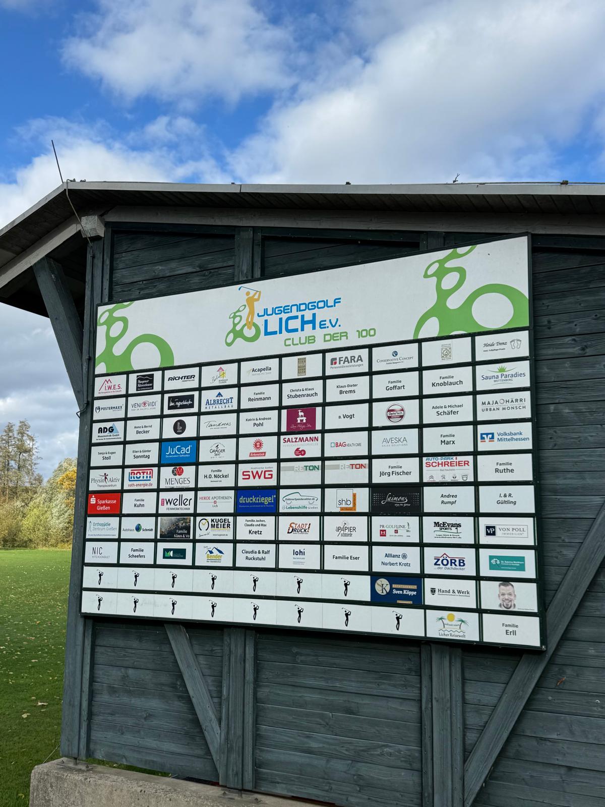 Um den Förderverein auch weiterhin mit einer regelmäßigen Spende von 300€ pro Jahr unterstützen zu können, könnt Ihr weiterhin im Club der 100 Mitglied werden. Bitte meldet Euch dafür entweder bei Jugendleiterin Meike Ronge (m.ronge@licher-golf-club.de) oder Clubpräsident Dirk Reinmann (d.reinmann@licher-golf-club.de).